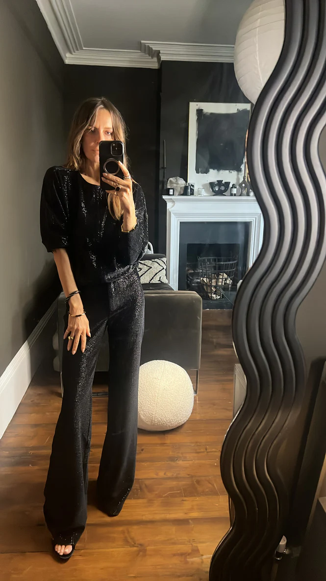 The Funke Top By Masscob is Our Go To Evening Vibe Soft Sensual Knit with A Hint of Sparkle and Deep V at The Back, Incredibly Sexy without trying to Hard, Team with Denim or the Matching Boudin Pants to Make a Impact.